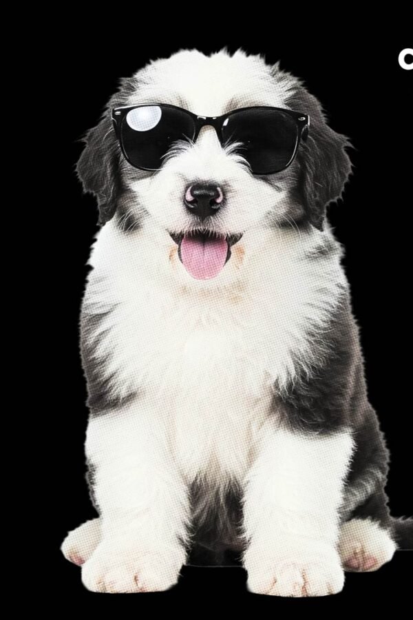 • Adorable estampado de cachorrito Viejo Pastor Inglés.