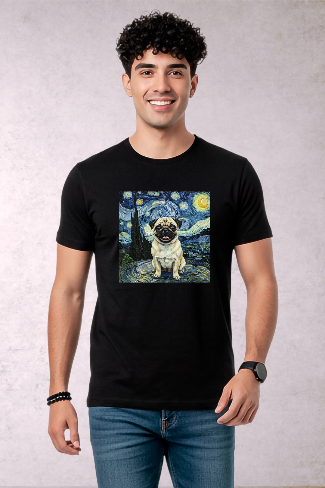 Playera Perro Pug Van Gogh Hombre